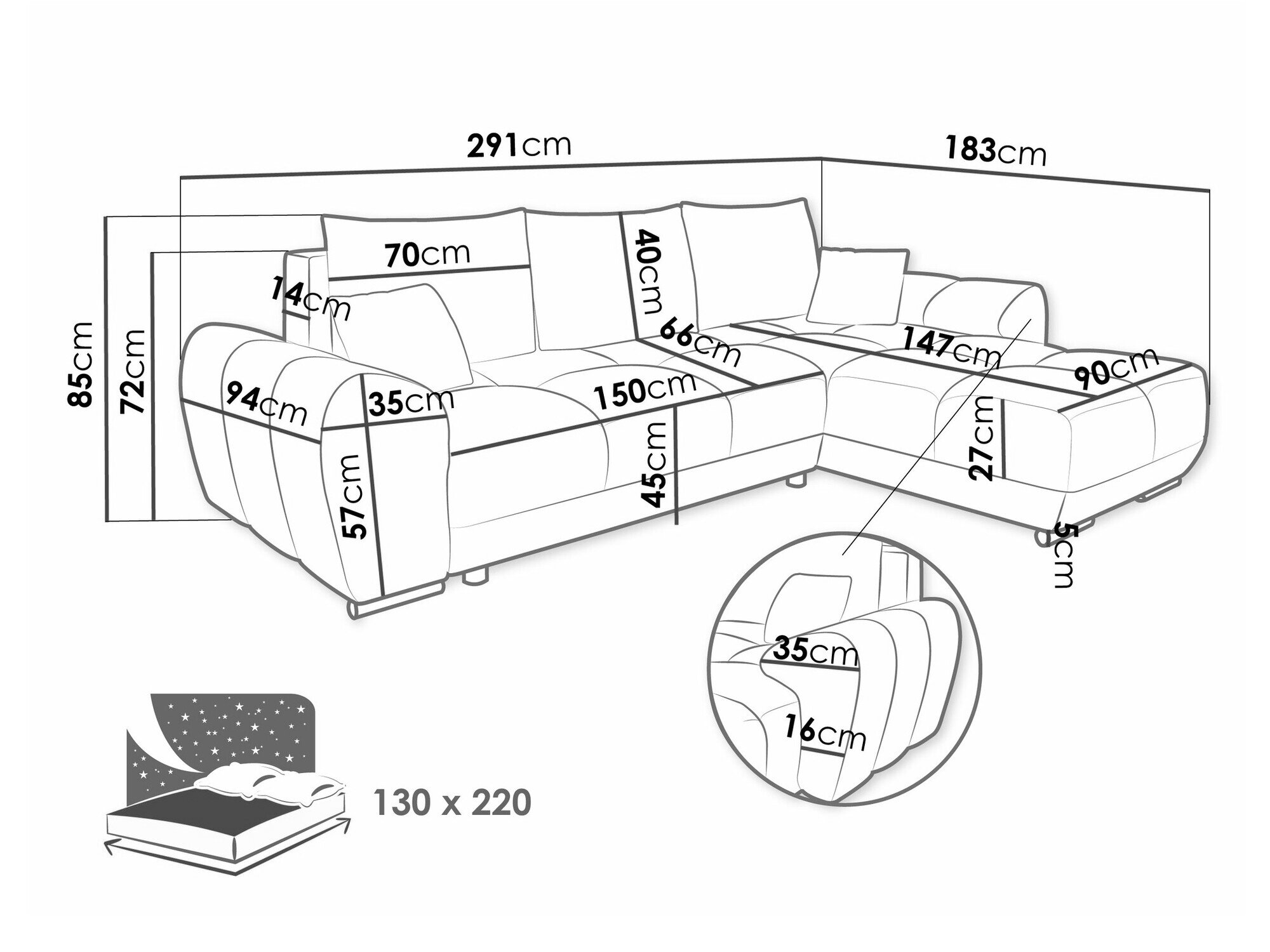 Længde på soveområde: