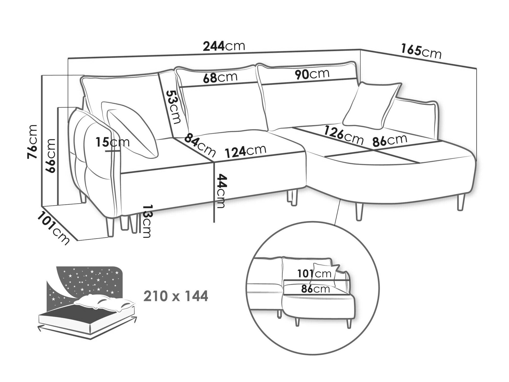Længde på soveområde: