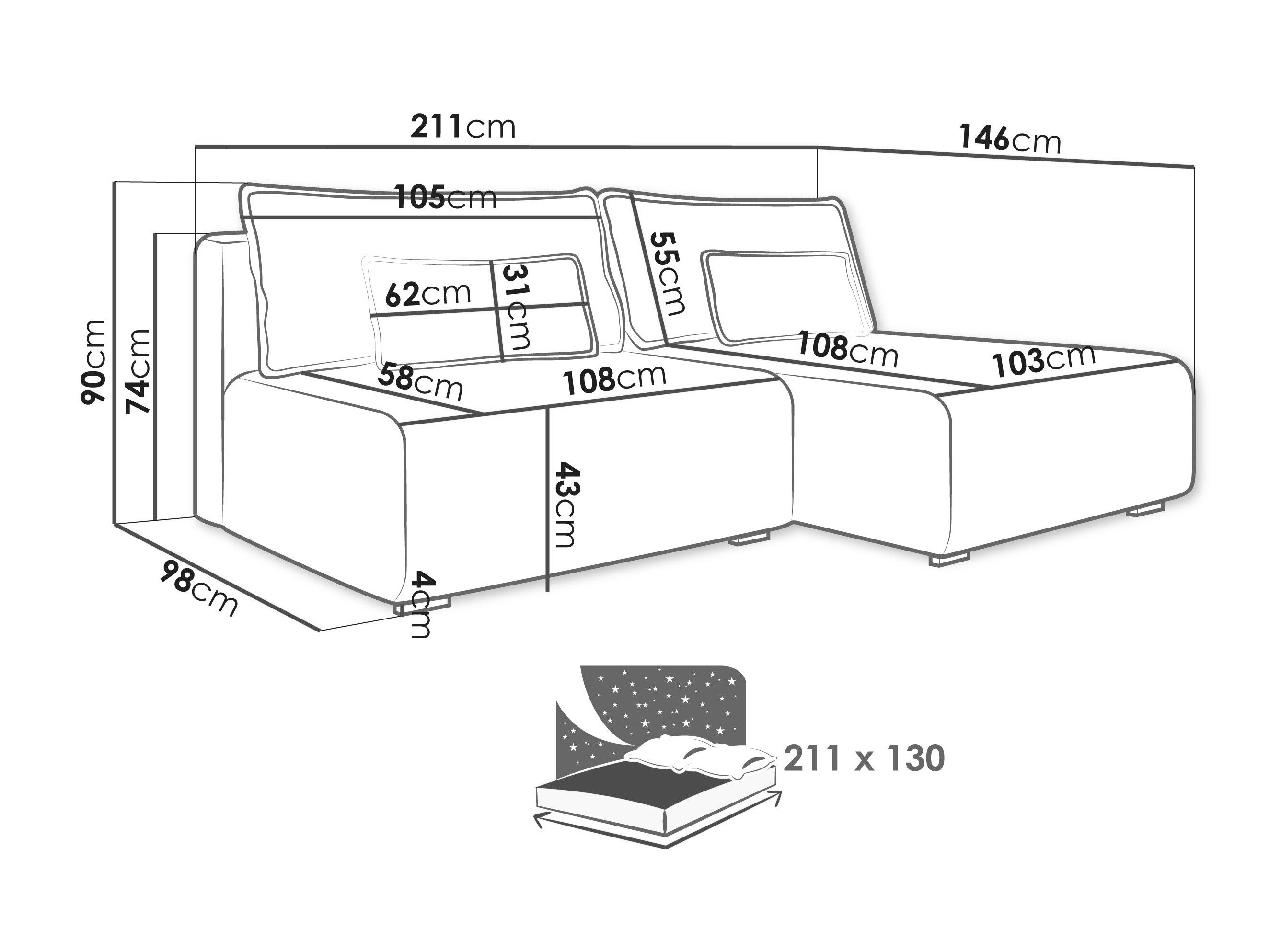 90 cm  211 cm  146 cm