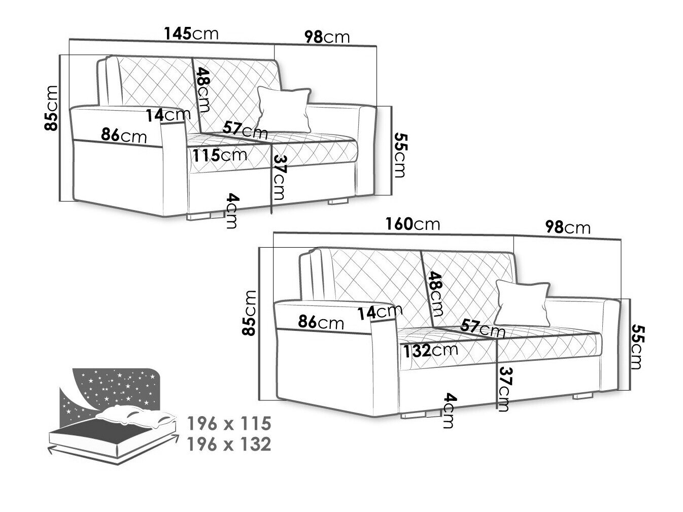 85 x 160 x 98 cm