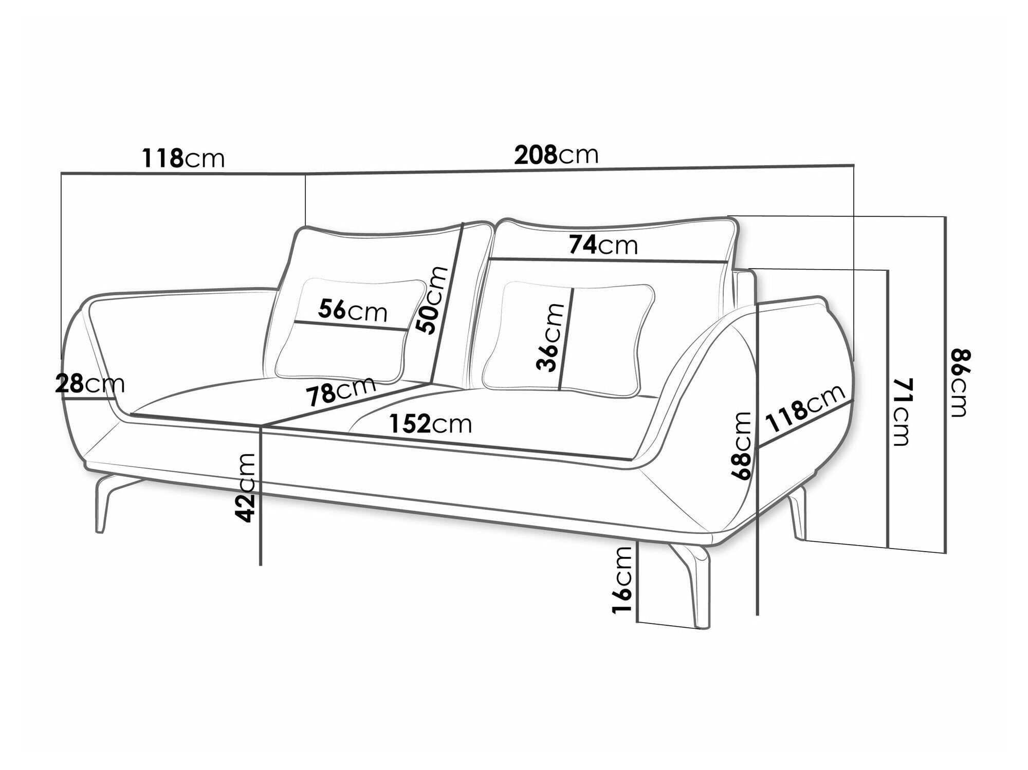 208 cm