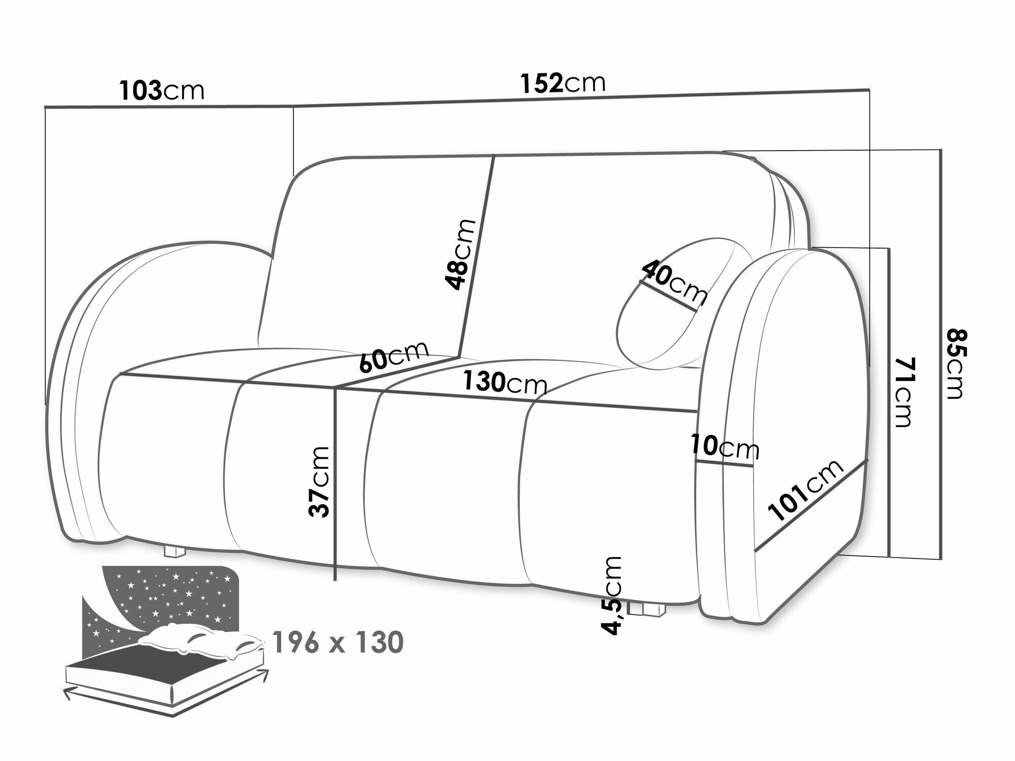 85 cm  152 cm  103 cm
