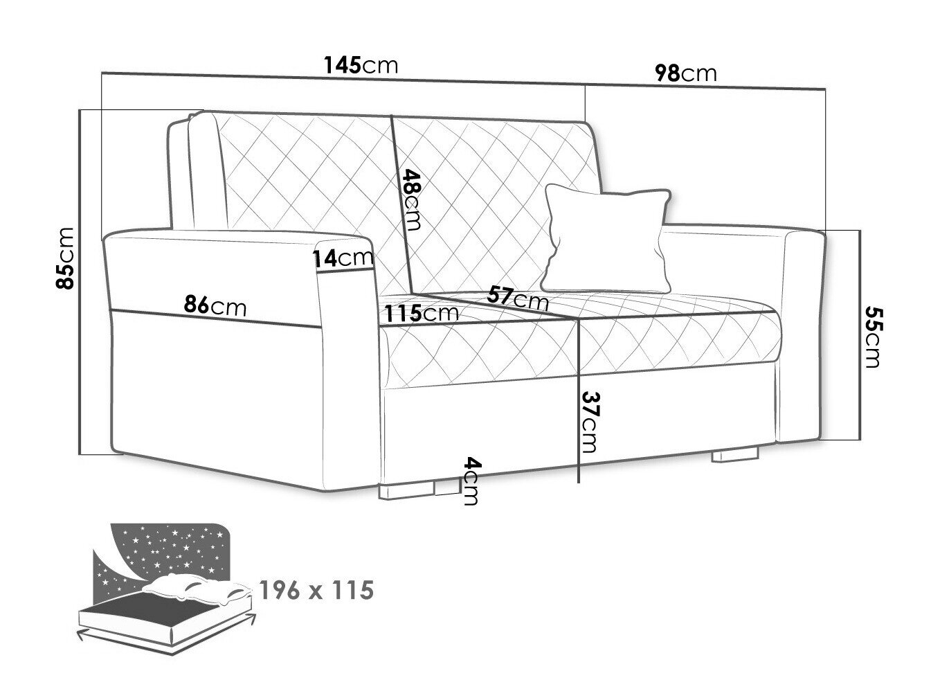 85 cm  145 cm  98 cm