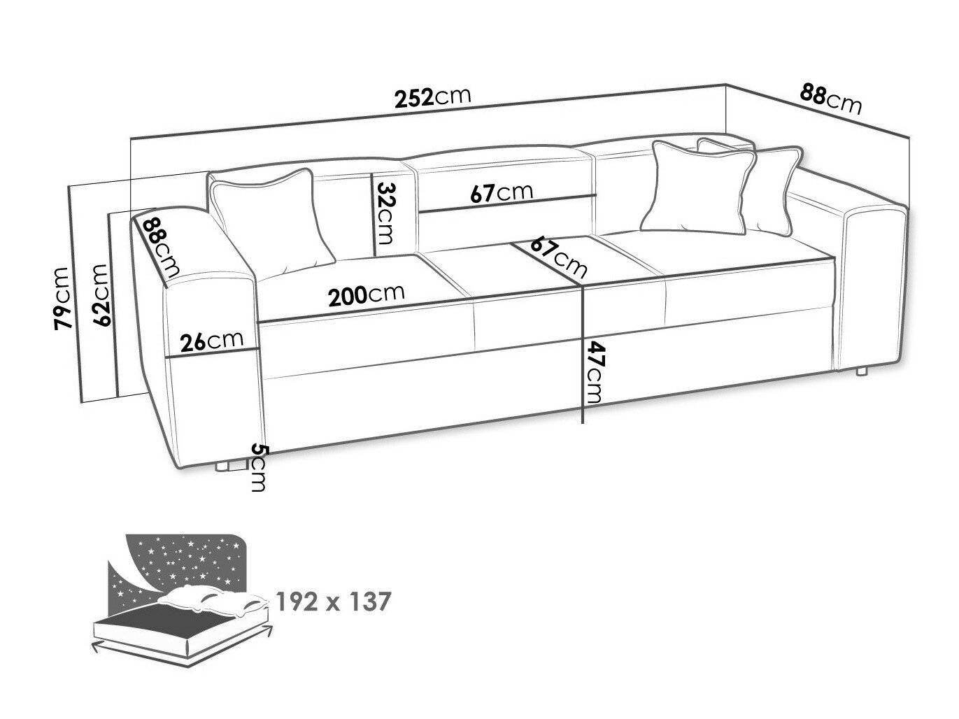 Længde på soveområde: