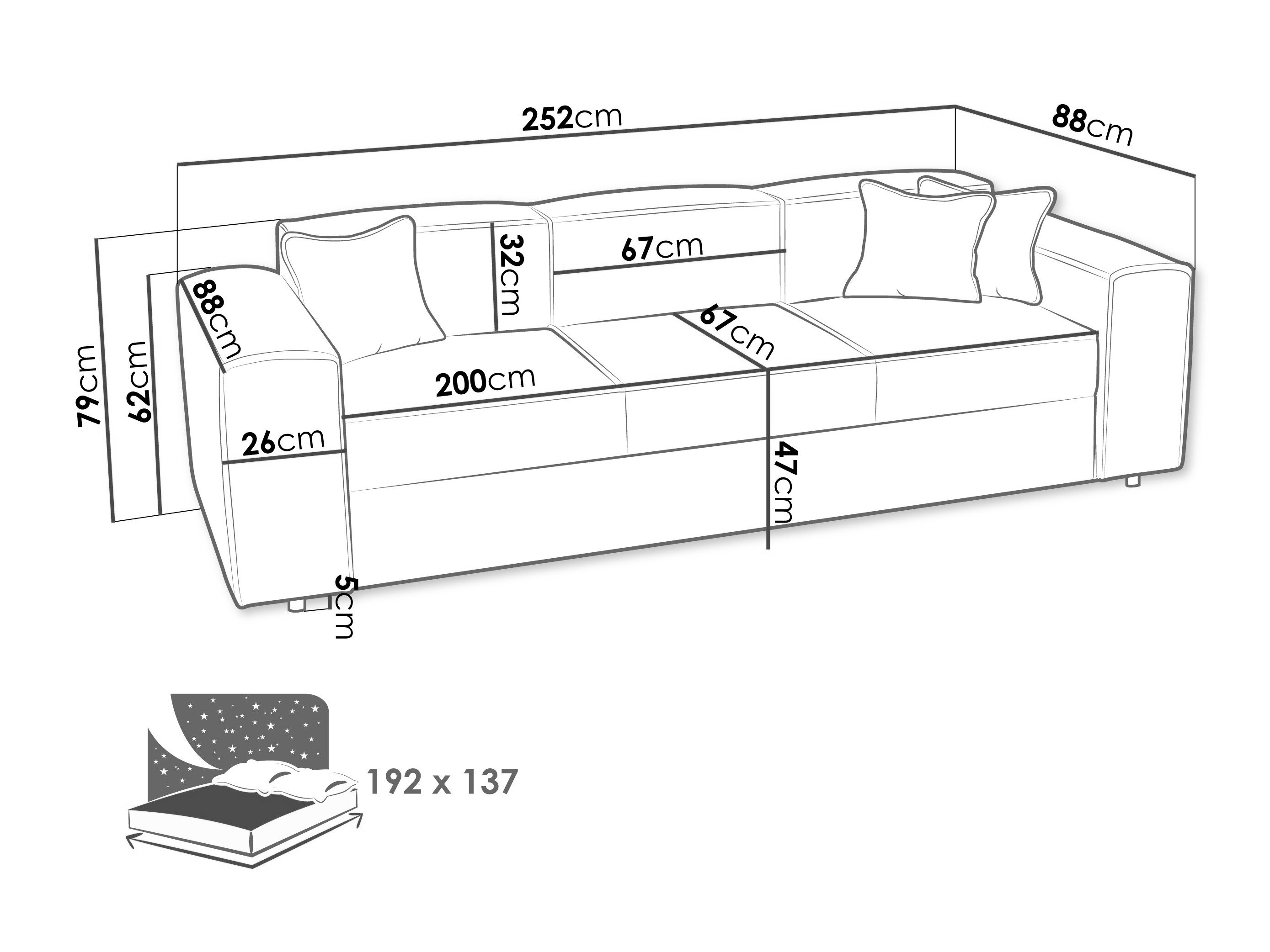 Længde på soveområde: