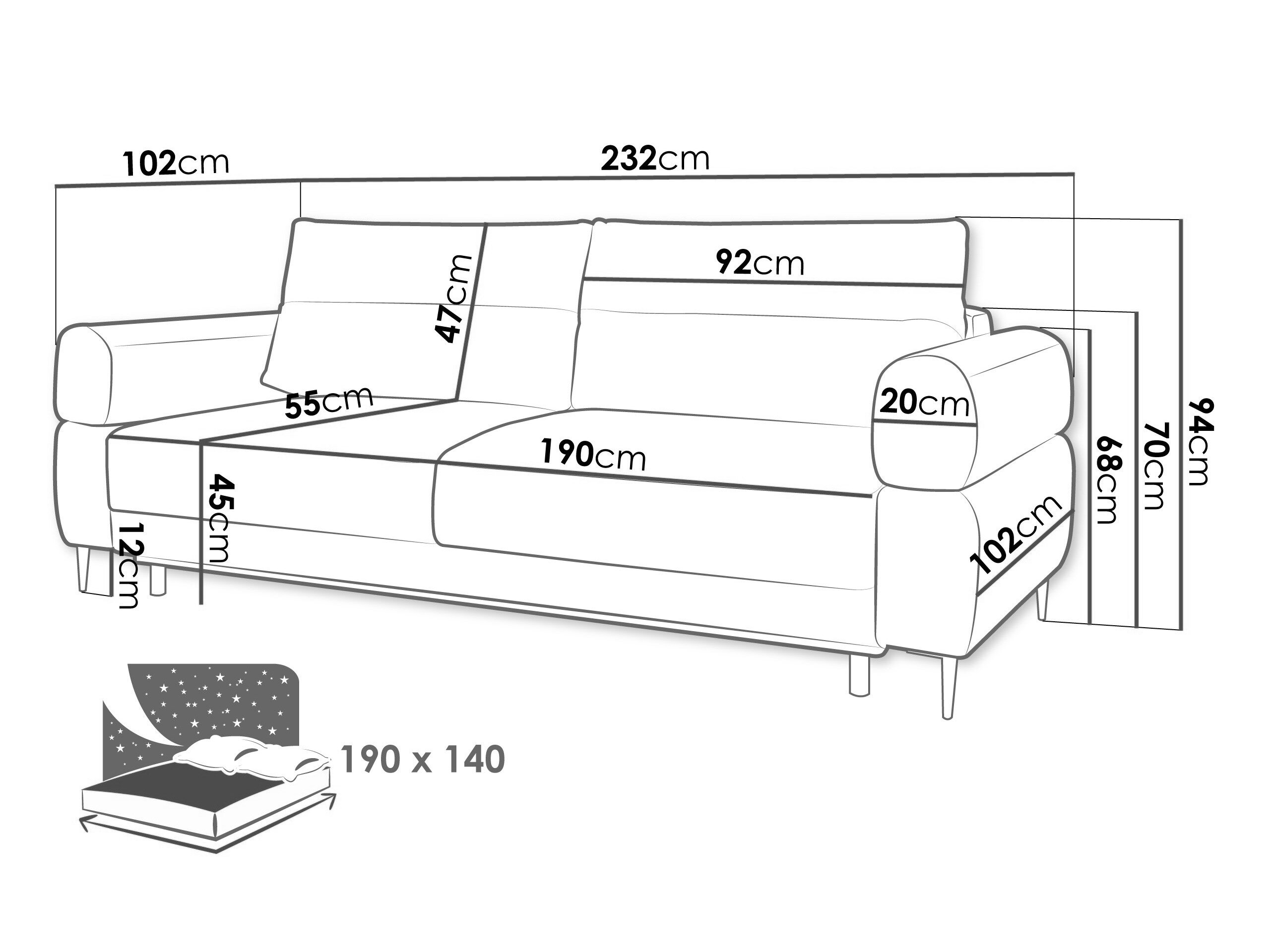 232 cm
