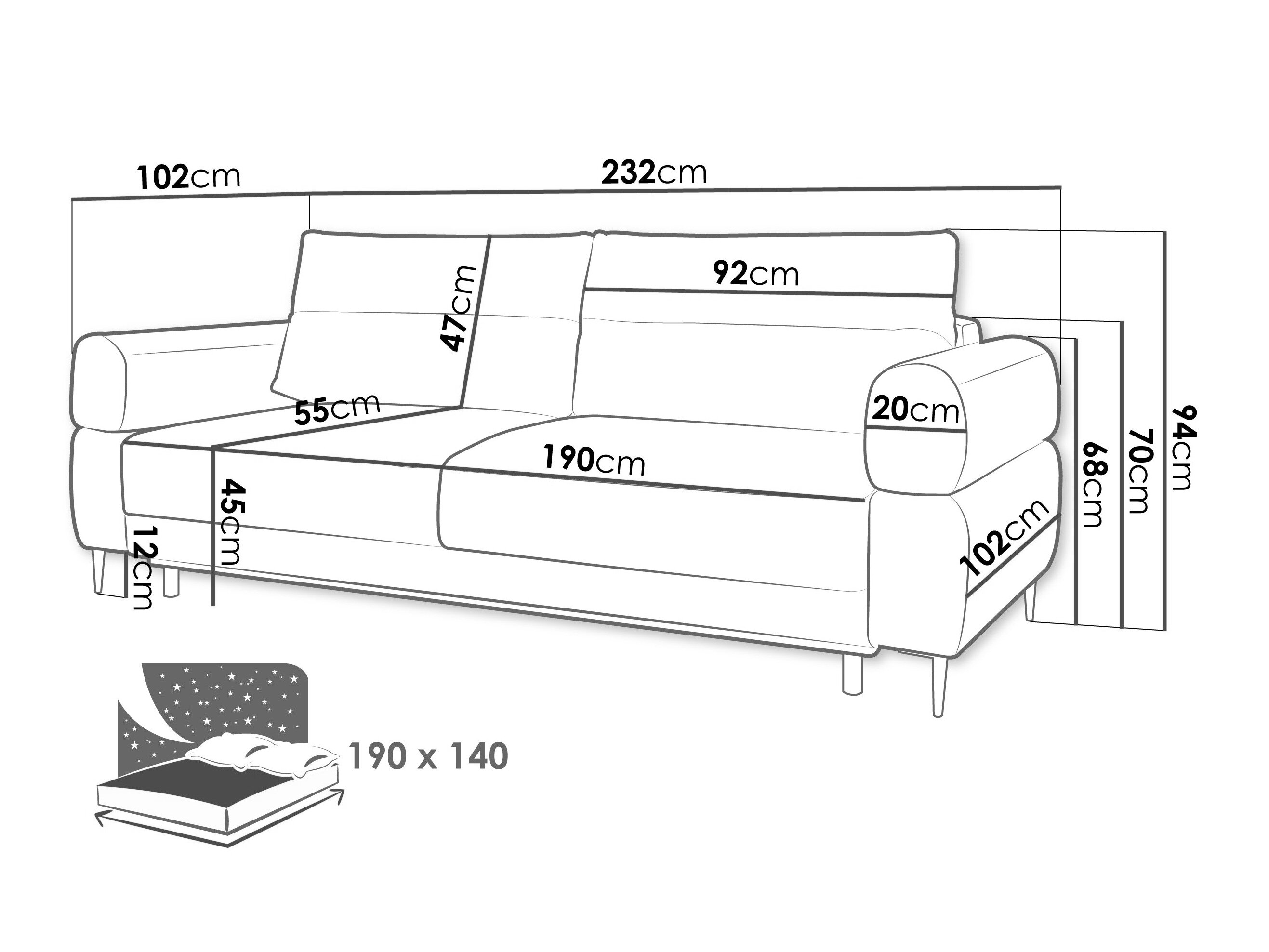 232 cm