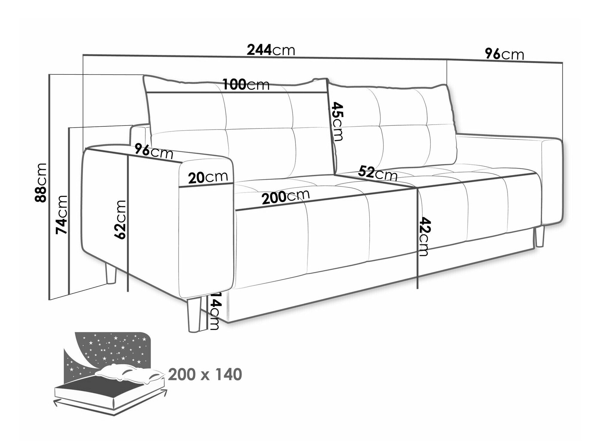 Sengekasse dimensioner: