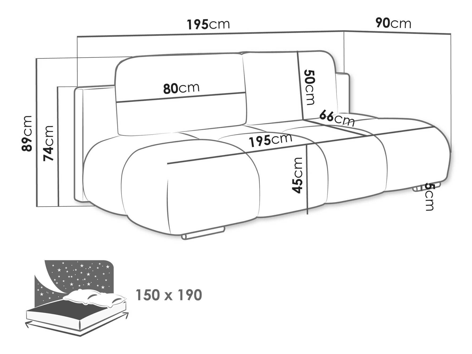 Længde på soveområde:
