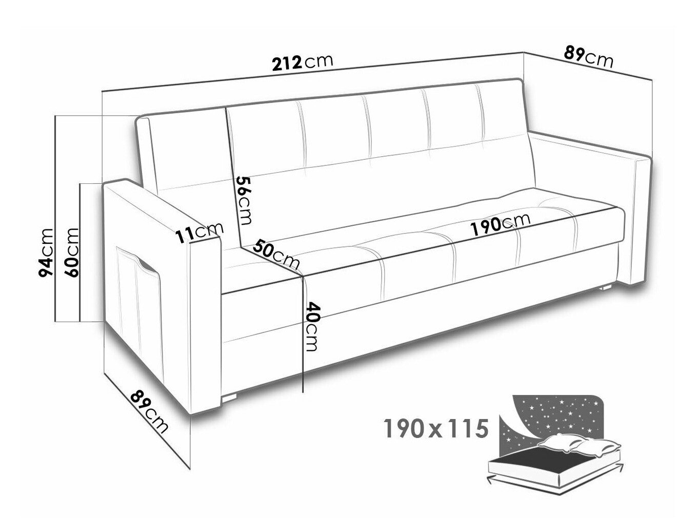 Længde på soveområde: