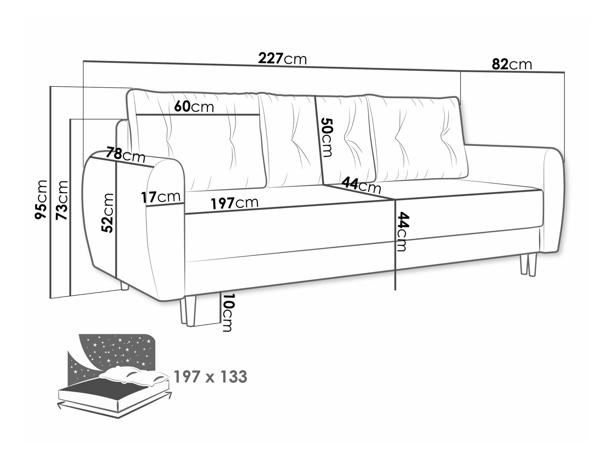 Længde på soveområde: