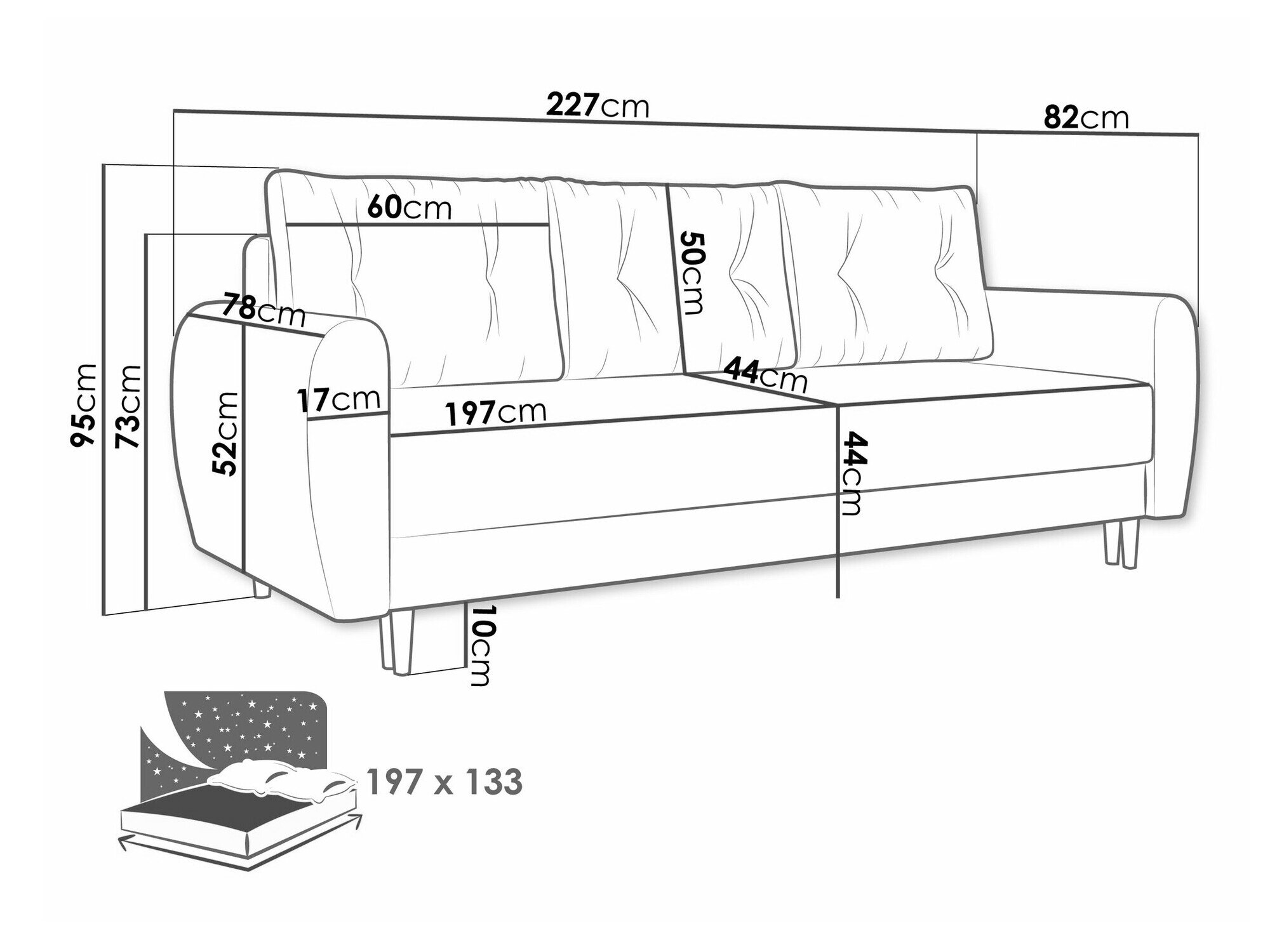 Længde på soveområde: