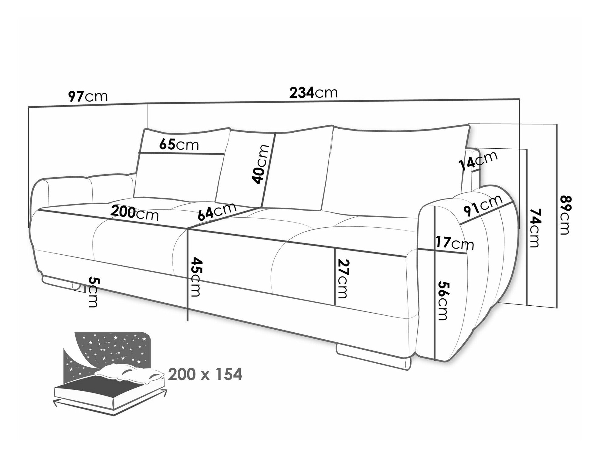 Blødt stof, der er meget behageligt at røre ved. Det ser godt ud og tilpasser sig godt til alle møbelserier. Stoffet ser ikke kun godt ud, men er også yderst praktisk. Stoffets overflade er modstandsdygtig over for slid og pilling. For at bevare stoffets oprindelige udseende så længe som muligt anbefales det at rengøre det med skånsomme rengøringsmidler, der er specielt designet til polstring.