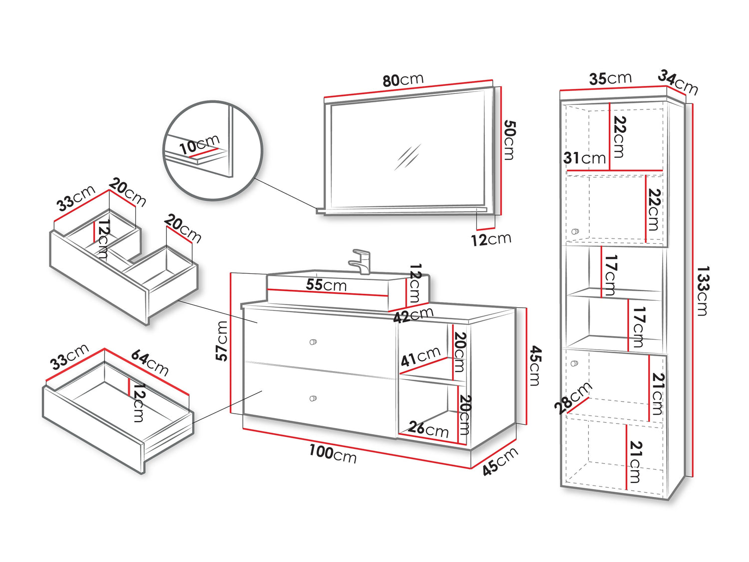 Håndvask skab dimensioner12 x 55 x 42 cm