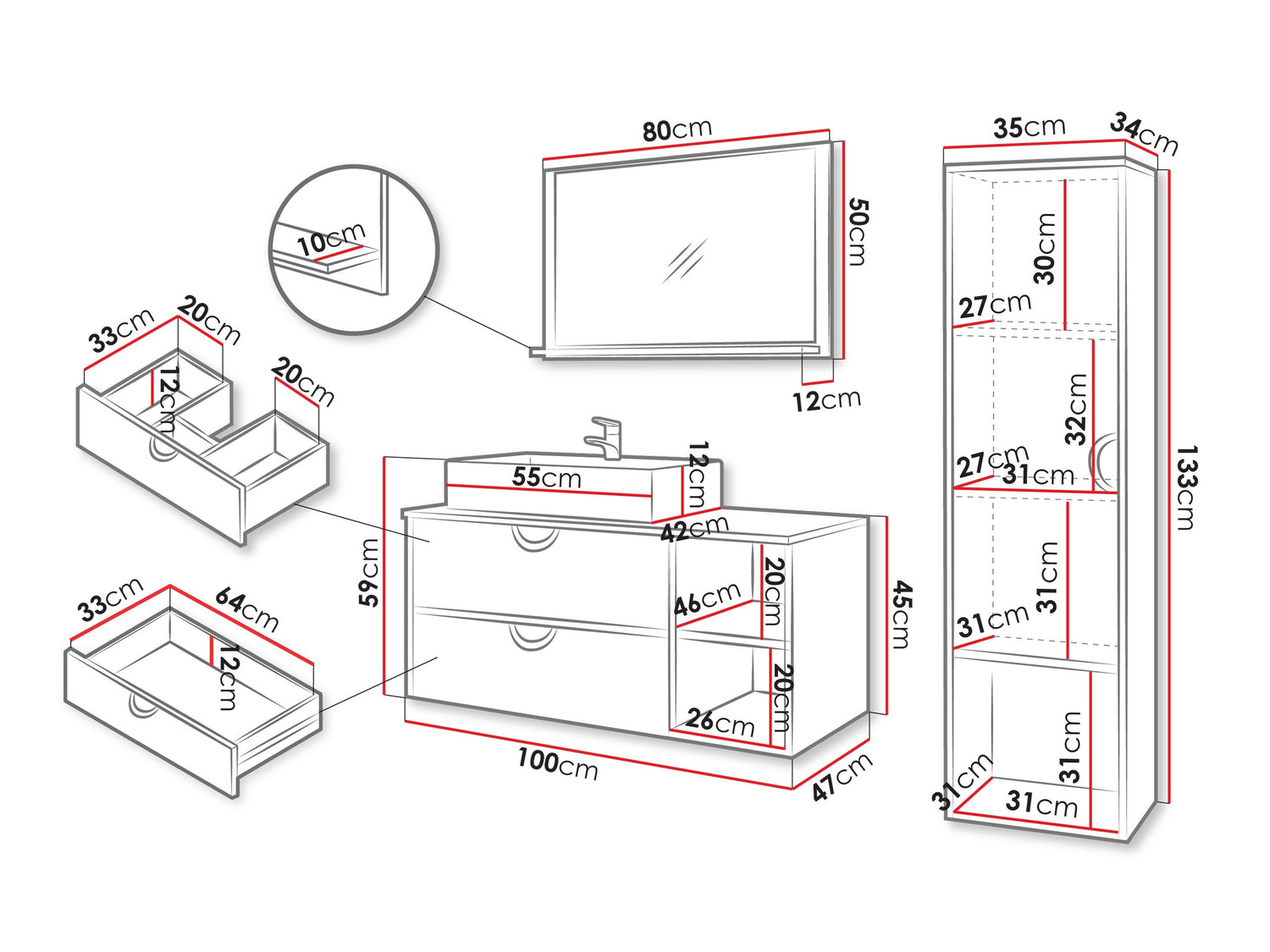 Håndvask skab dimensioner45 x 100 x 47 cm