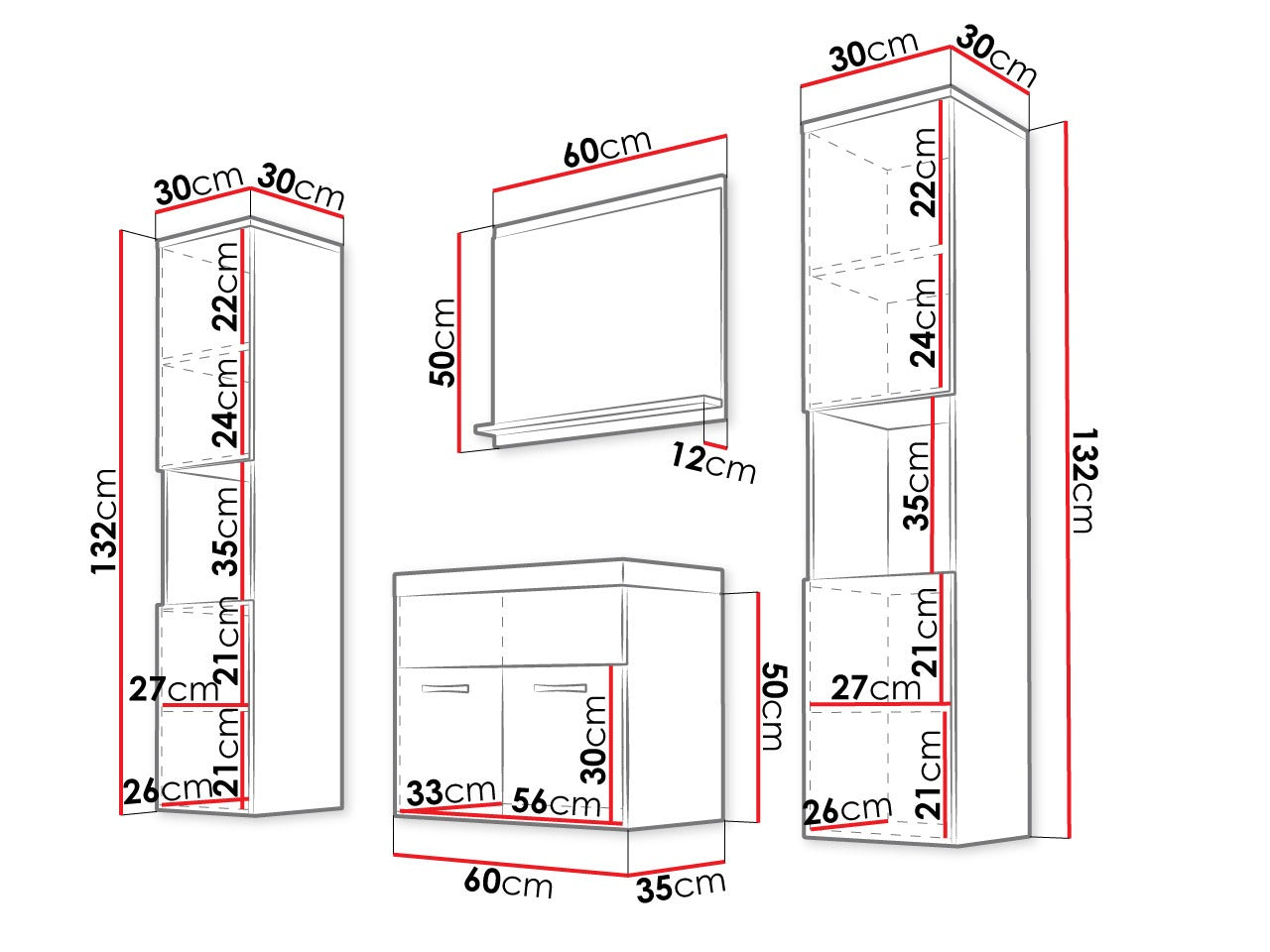 Hængende skabs dimensioner132 x 30 x 30 cm
