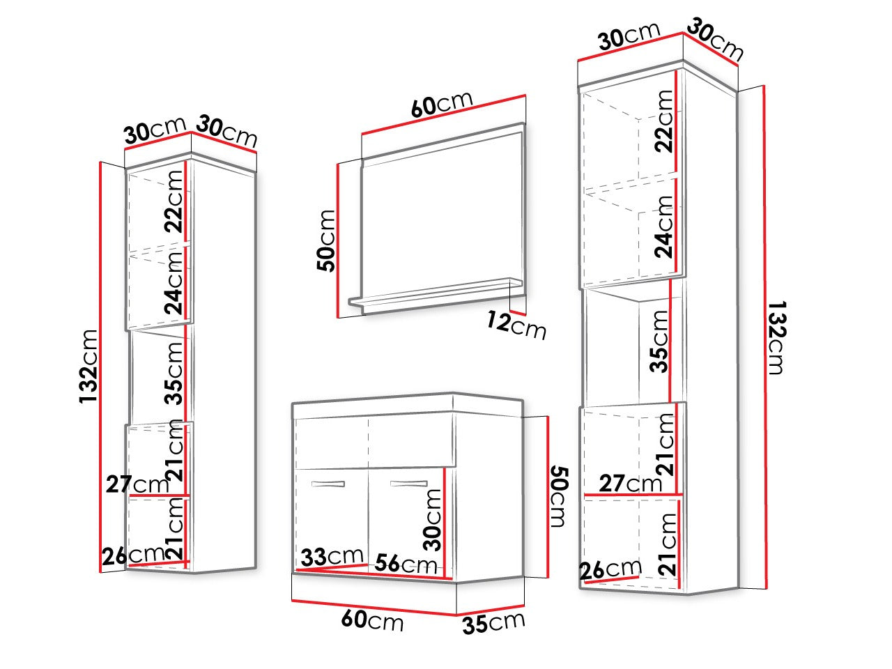 Hængende skabs dimensioner132 x 30 x 30 cm
