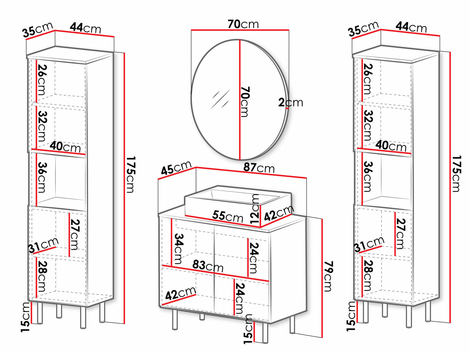 Skab dimensioner175 x 44 x 35 cm