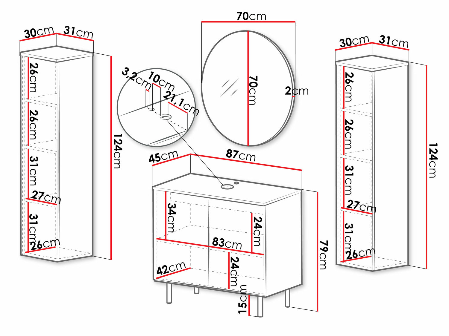 Hængende skabs dimensioner124 x 31 x 30 cm