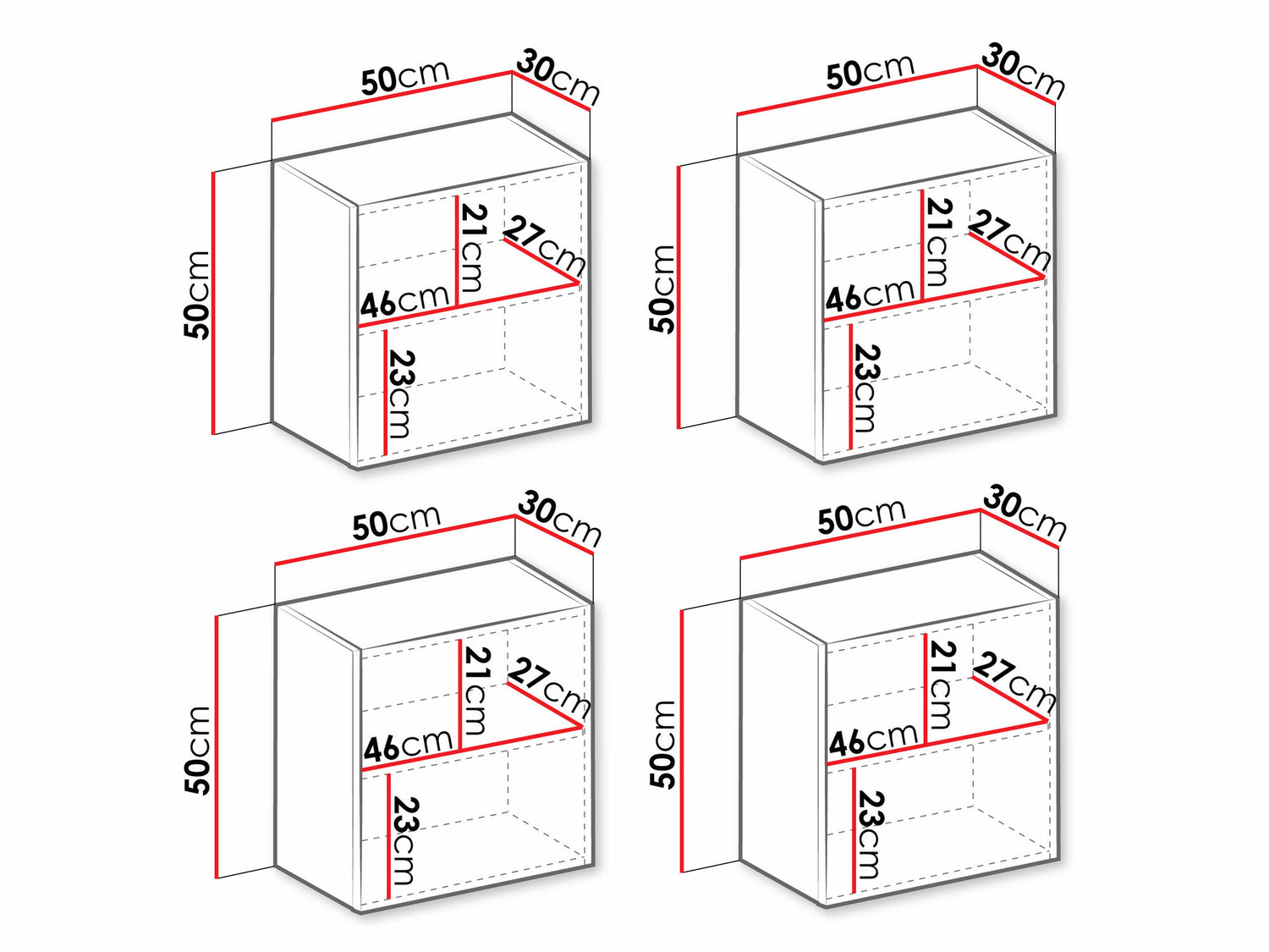 Hængende skabs dimensioner50 x 50 x 30 cm