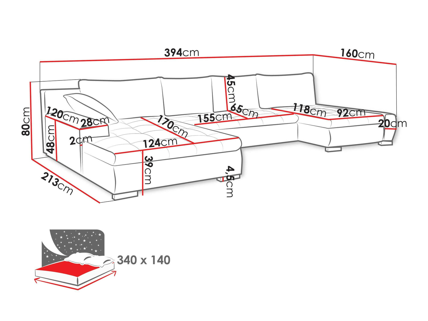 Længde på soveområde340 cm