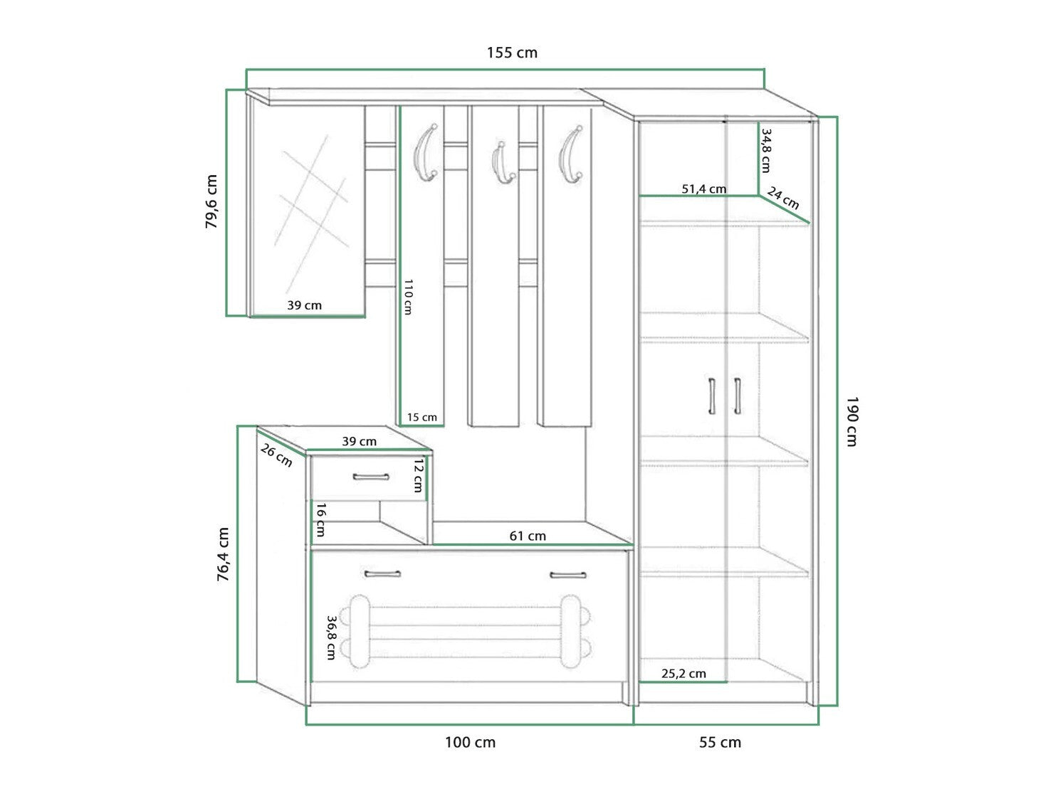 Dimensioner på garderobeskabe190 x 55 x 26 cm