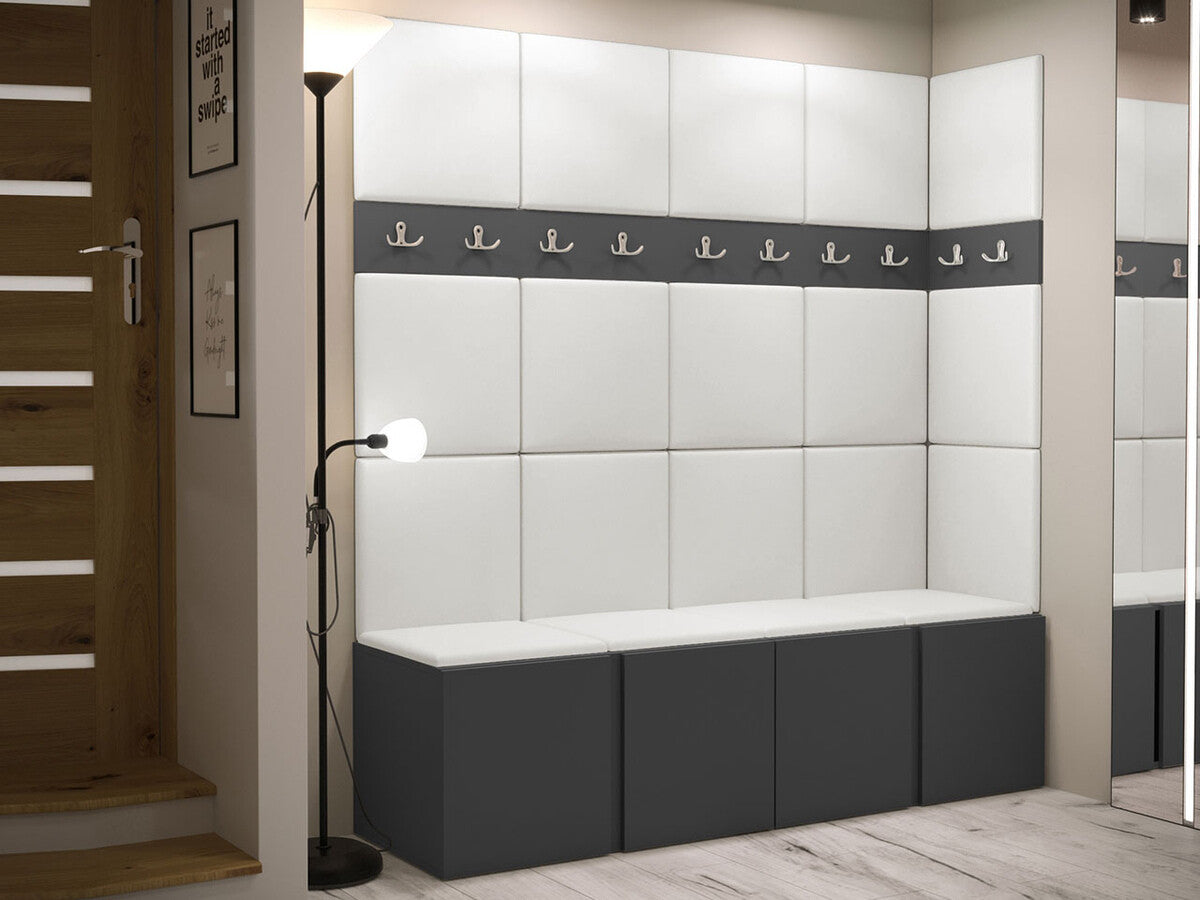 Blødt vægpanel, et elegant og funktionelt valg til dit hjem. Takket være den hævede overflade skaber panelet en unik 3D-effekt. Disse bløde paneler vil give mere hygge og komfort, og de vil desuden se ud som et dekorativt element. På grund af deres unikke egenskaber absorberer de lyd. Brug panelerne som en separat rumfunktion eller til at dække hele væggen. Panelet består af en 8 mm tyk plade, som gør det nemmere at montere på væggen. Blødheden og formen sikres af et 3 cm tykt syntetisk stof og det materiale, der dækker det. Du kan vælge et panelstof fra en bred vifte af farver, så du er sikker på at finde det, der passer bedst til din boligindretning.
