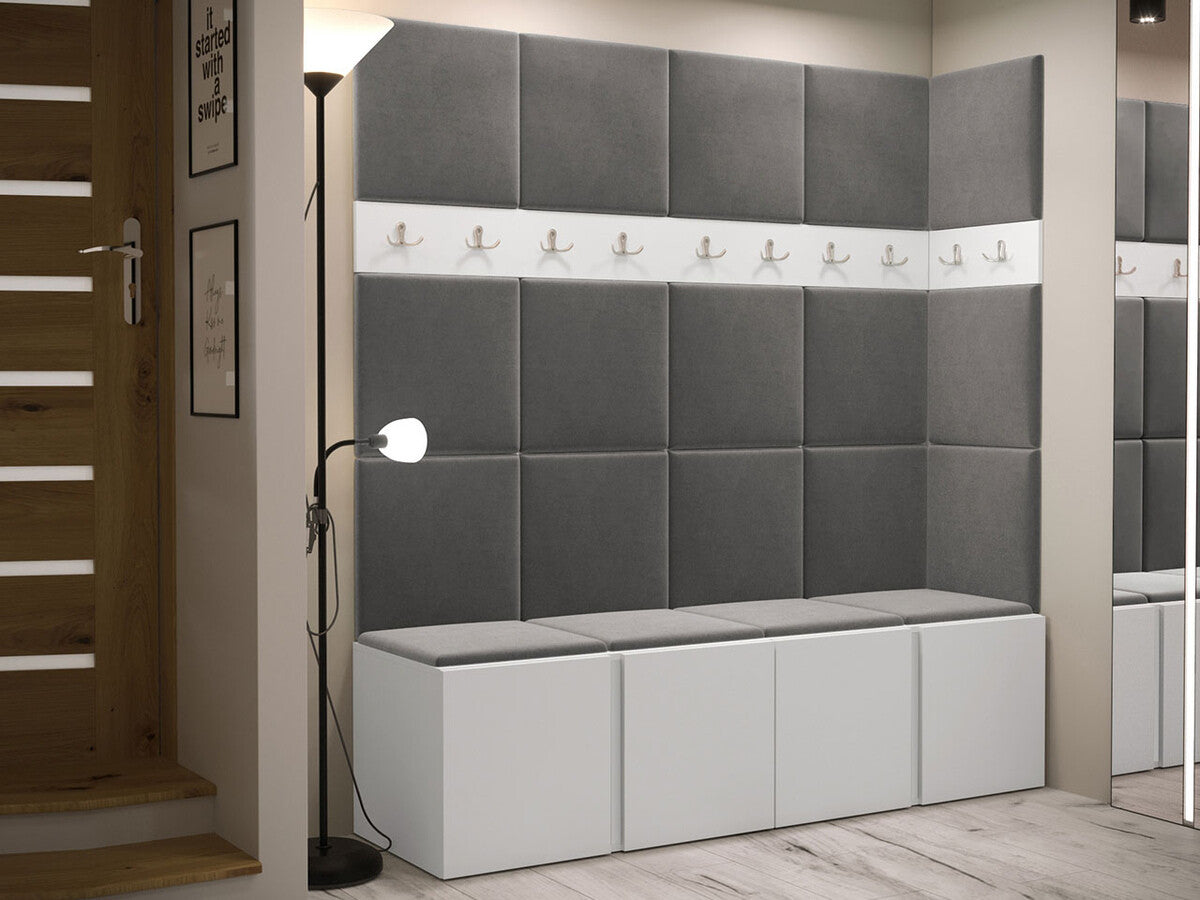 Blødt vægpanel, et elegant og funktionelt valg til dit hjem. Takket være den hævede overflade skaber panelet en unik 3D-effekt. Disse bløde paneler vil give mere hygge og komfort, og de vil desuden se ud som et dekorativt element. På grund af deres unikke egenskaber absorberer de lyd. Brug panelerne som en separat rumfunktion eller til at dække hele væggen. Panelet består af en 8 mm tyk plade, som gør det nemmere at montere på væggen. Blødheden og formen sikres af et 3 cm tykt syntetisk stof og det materiale, der dækker det. Du kan vælge et panelstof fra en bred vifte af farver, så du er sikker på at finde det, der passer bedst til din boligindretning.