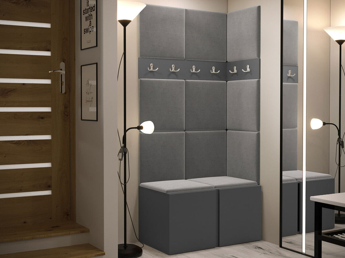 Blødt vægpanel, et elegant og funktionelt valg til dit hjem. Takket være den hævede overflade skaber panelet en unik 3D-effekt. Disse bløde paneler vil give mere hygge og komfort, og de vil desuden se ud som et dekorativt element. På grund af deres unikke egenskaber absorberer de lyd. Brug panelerne som en separat rumfunktion eller til at dække hele væggen. Panelet består af en 8 mm tyk plade, som gør det nemmere at montere på væggen. Blødheden og formen sikres af et 3 cm tykt syntetisk stof og det materiale, der dækker det. Du kan vælge et panelstof fra en bred vifte af farver, så du er sikker på at finde det, der passer bedst til din boligindretning.
