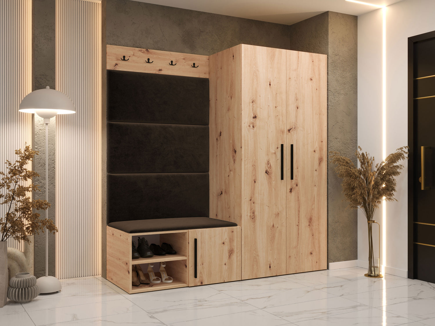 Blødt vægpanel, et elegant og funktionelt valg til dit hjem. Takket være den hævede overflade skaber panelet en unik 3D-effekt. Disse bløde paneler vil give mere hygge og komfort, og de vil desuden se ud som et dekorativt element. På grund af deres unikke egenskaber absorberer de lyd. Brug panelerne som en separat rumfunktion eller til at dække hele væggen. Panelet består af en 8 mm tyk plade, som gør det nemmere at montere på væggen. Blødheden og formen sikres af et 3 cm tykt syntetisk stof og det materiale, der dækker det. Du kan vælge et panelstof fra en bred vifte af farver, så du er sikker på at finde det, der passer bedst til din boligindretning.