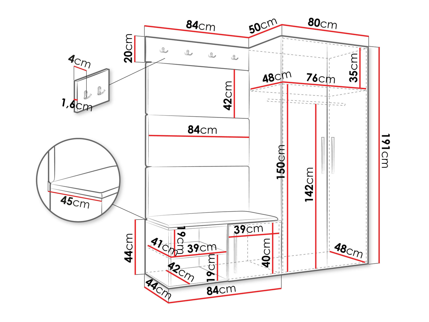 Dimensioner på garderobeskabe191 x 80 x 50 cm