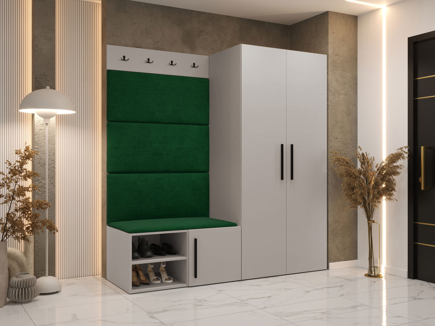 Blødt vægpanel, et elegant og funktionelt valg til dit hjem. Takket være den hævede overflade skaber panelet en unik 3D-effekt. Disse bløde paneler vil give mere hygge og komfort, og de vil desuden se ud som et dekorativt element. På grund af deres unikke egenskaber absorberer de lyd. Brug panelerne som en separat rumfunktion eller til at dække hele væggen. Panelet består af en 8 mm tyk plade, som gør det nemmere at montere på væggen. Blødheden og formen sikres af et 3 cm tykt syntetisk stof og det materiale, der dækker det. Du kan vælge et panelstof fra en bred vifte af farver, så du er sikker på at finde det, der passer bedst til din boligindretning.