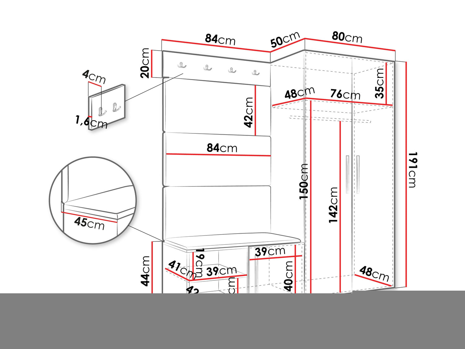 • Dimensioner på garderobeskabe