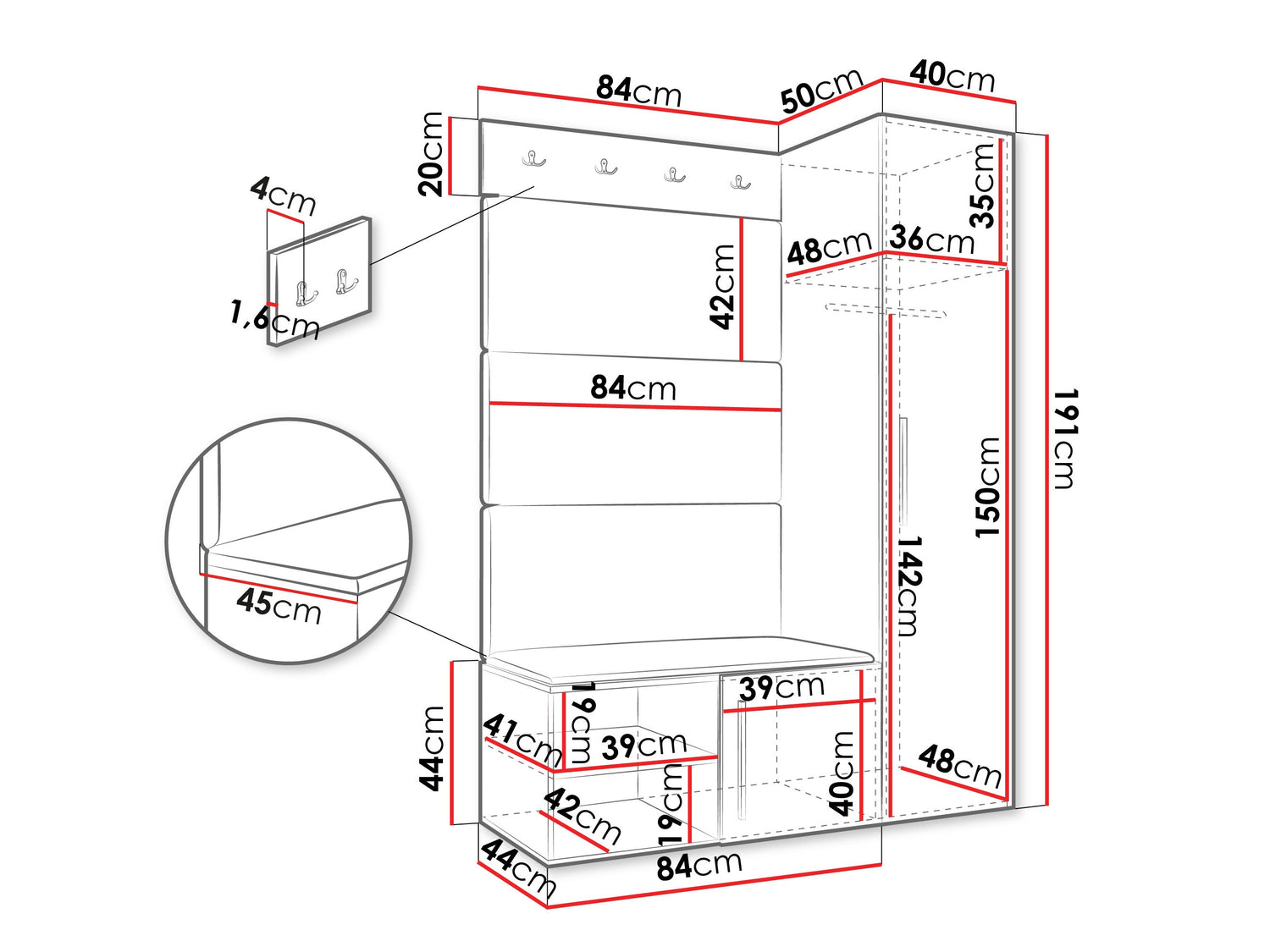 • Dimensioner på garderobeskabe