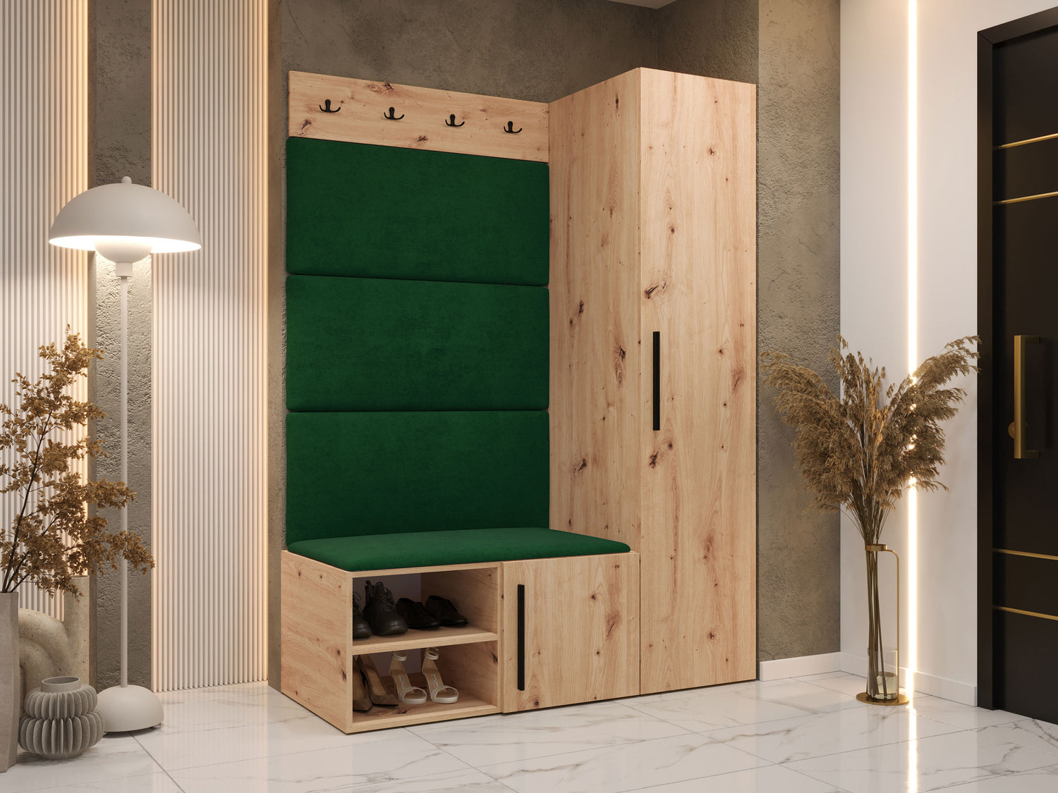 Blødt vægpanel, et elegant og funktionelt valg til dit hjem. Takket være den hævede overflade skaber panelet en unik 3D-effekt. Disse bløde paneler vil give mere hygge og komfort, og de vil desuden se ud som et dekorativt element. På grund af deres unikke egenskaber absorberer de lyd. Brug panelerne som en separat rumfunktion eller til at dække hele væggen. Panelet består af en 8 mm tyk plade, som gør det nemmere at montere på væggen. Blødheden og formen sikres af et 3 cm tykt syntetisk stof og det materiale, der dækker det. Du kan vælge et panelstof fra en bred vifte af farver, så du er sikker på at finde det, der passer bedst til din boligindretning.