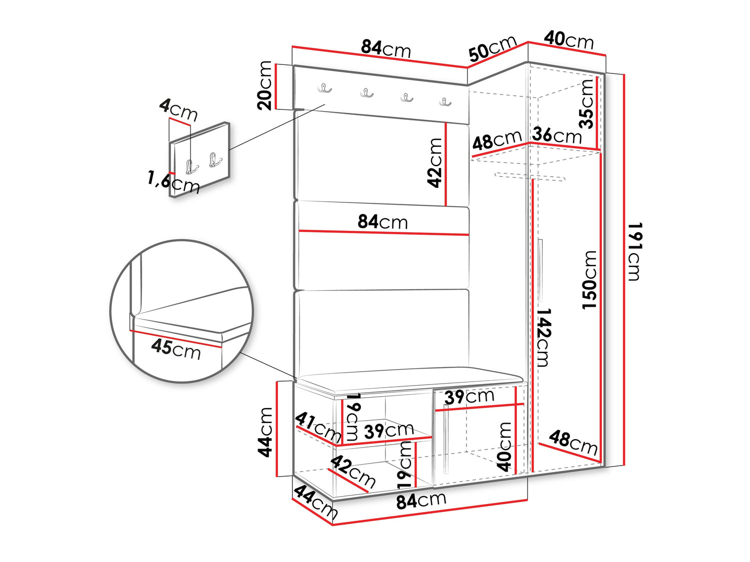 • Dimensioner på garderobeskabe