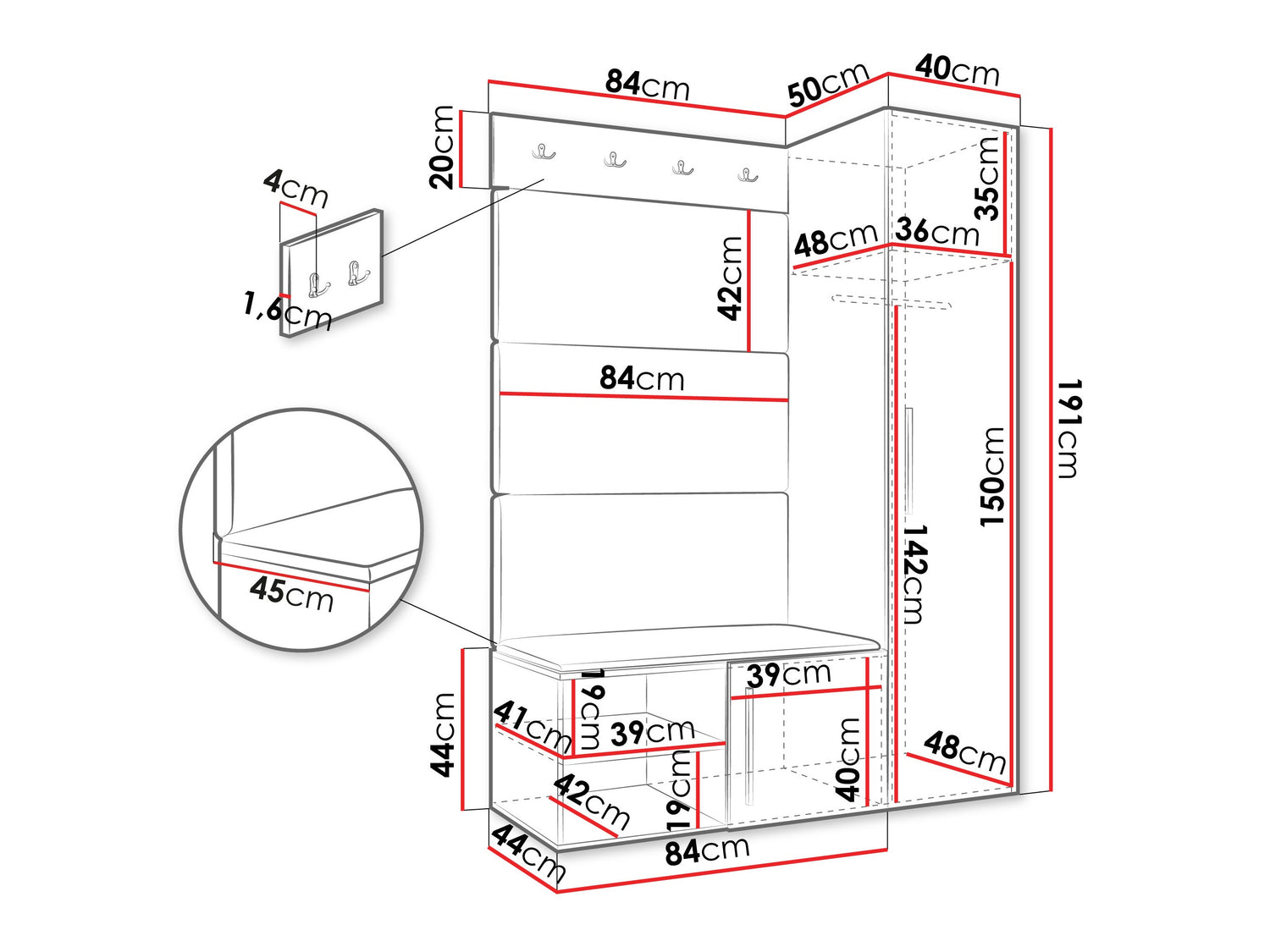 Dimensioner på garderobeskabe191 x 40 x 50 cm