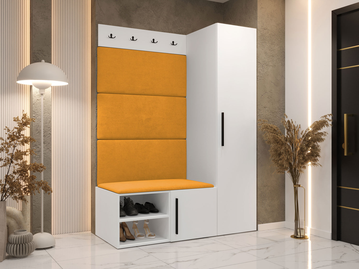 Blødt vægpanel, et elegant og funktionelt valg til dit hjem. Takket være den hævede overflade skaber panelet en unik 3D-effekt. Disse bløde paneler vil give mere hygge og komfort, og de vil desuden se ud som et dekorativt element. På grund af deres unikke egenskaber absorberer de lyd. Brug panelerne som en separat rumfunktion eller til at dække hele væggen. Panelet består af en 8 mm tyk plade, som gør det nemmere at montere på væggen. Blødheden og formen sikres af et 3 cm tykt syntetisk stof og det materiale, der dækker det. Du kan vælge et panelstof fra en bred vifte af farver, så du er sikker på at finde det, der passer bedst til din boligindretning.