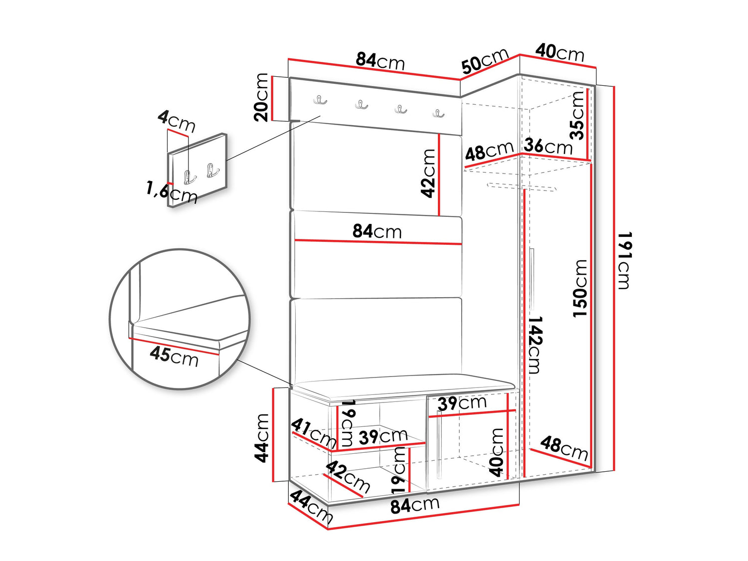 • Dimensioner på garderobeskabe