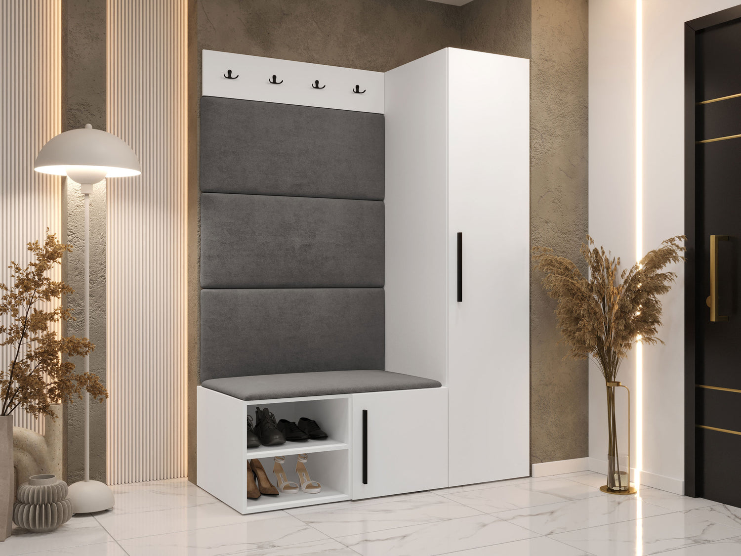 Blødt vægpanel, et elegant og funktionelt valg til dit hjem. Takket være den hævede overflade skaber panelet en unik 3D-effekt. Disse bløde paneler vil give mere hygge og komfort, og de vil desuden se ud som et dekorativt element. På grund af deres unikke egenskaber absorberer de lyd. Brug panelerne som en separat rumfunktion eller til at dække hele væggen. Panelet består af en 8 mm tyk plade, som gør det nemmere at montere på væggen. Blødheden og formen sikres af et 3 cm tykt syntetisk stof og det materiale, der dækker det. Du kan vælge et panelstof fra en bred vifte af farver, så du er sikker på at finde det, der passer bedst til din boligindretning.