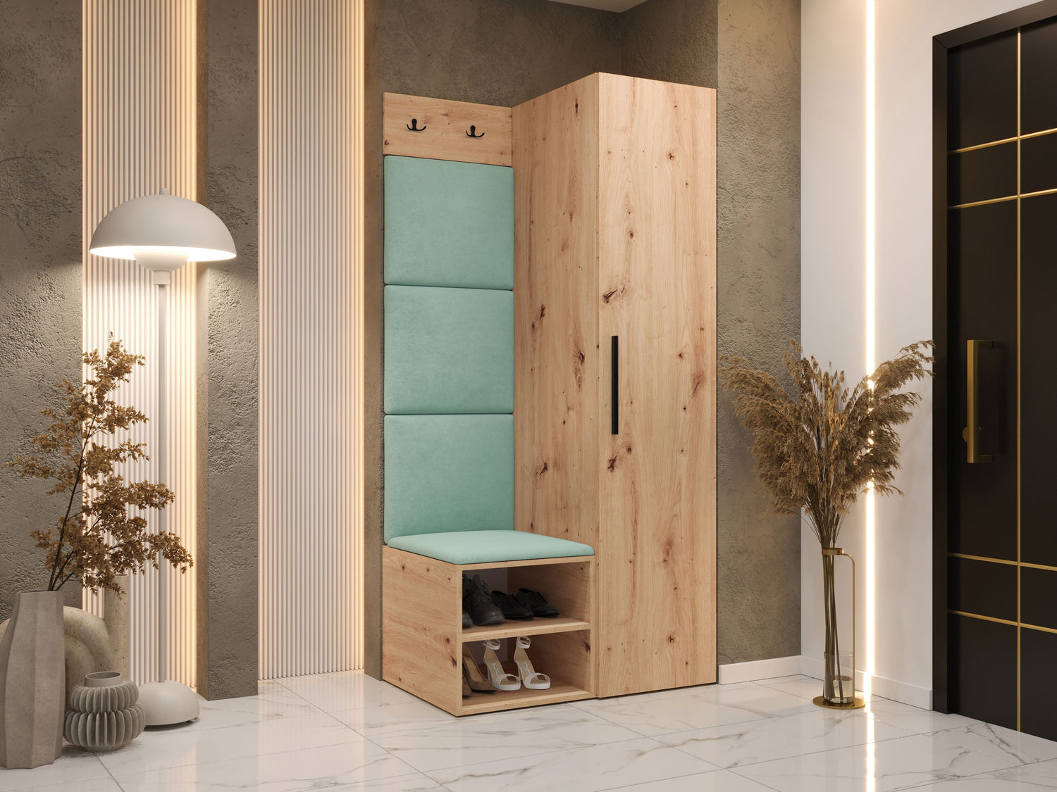 Blødt vægpanel, et elegant og funktionelt valg til dit hjem. Takket være den hævede overflade skaber panelet en unik 3D-effekt. Disse bløde paneler vil give mere hygge og komfort, og de vil desuden se ud som et dekorativt element. På grund af deres unikke egenskaber absorberer de lyd. Brug panelerne som en separat rumfunktion eller til at dække hele væggen. Panelet består af en 8 mm tyk plade, som gør det nemmere at montere på væggen. Blødheden og formen sikres af et 3 cm tykt syntetisk stof og det materiale, der dækker det. Du kan vælge et panelstof fra en bred vifte af farver, så du er sikker på at finde det, der passer bedst til din boligindretning.