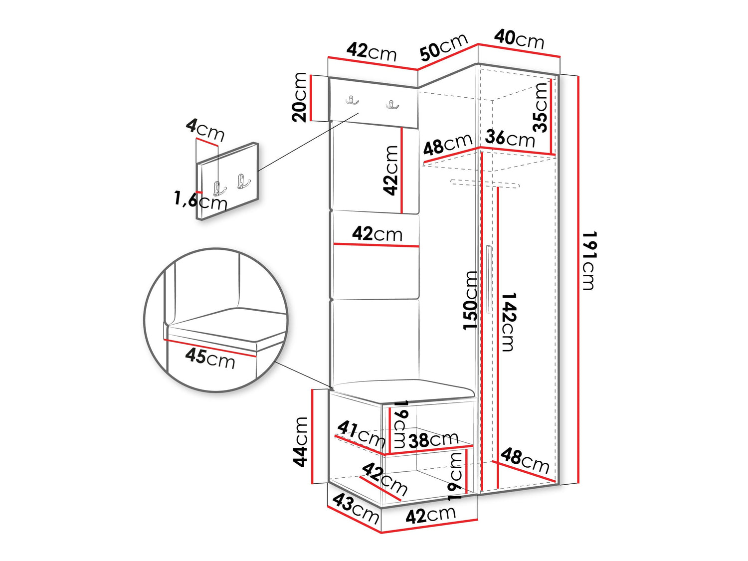 • Dimensioner på garderobeskabe