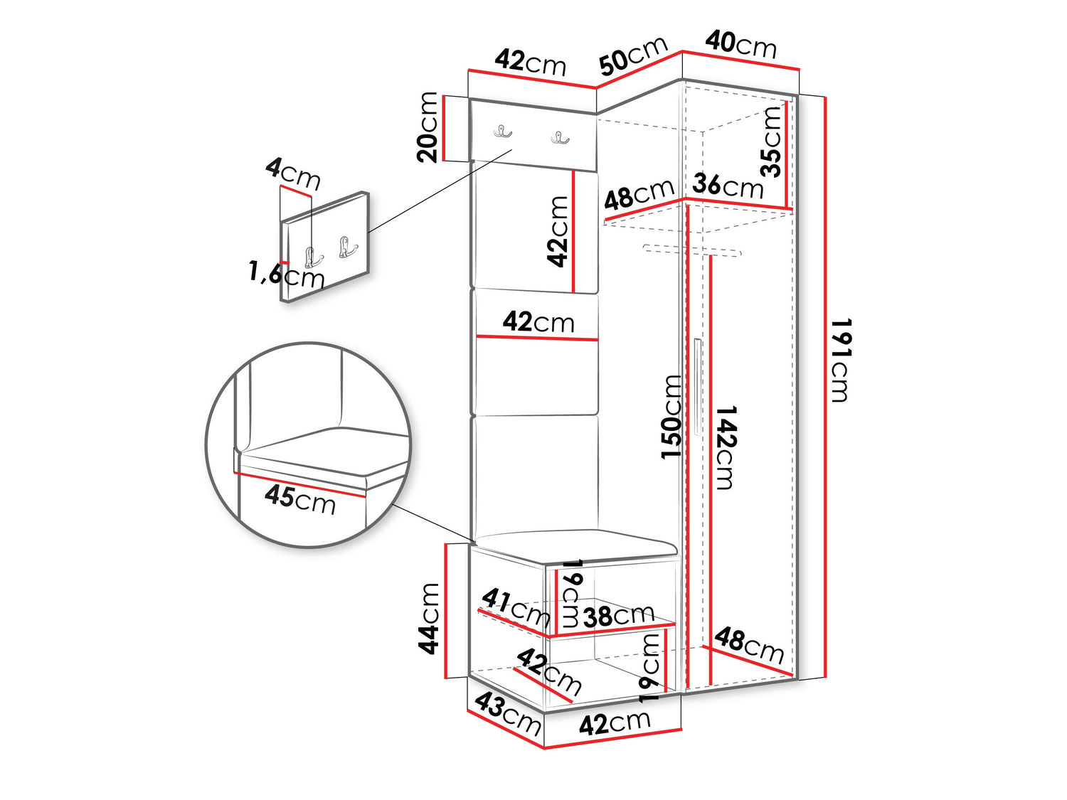 Dimensioner på garderobeskabe191 x 40 x 50 cm