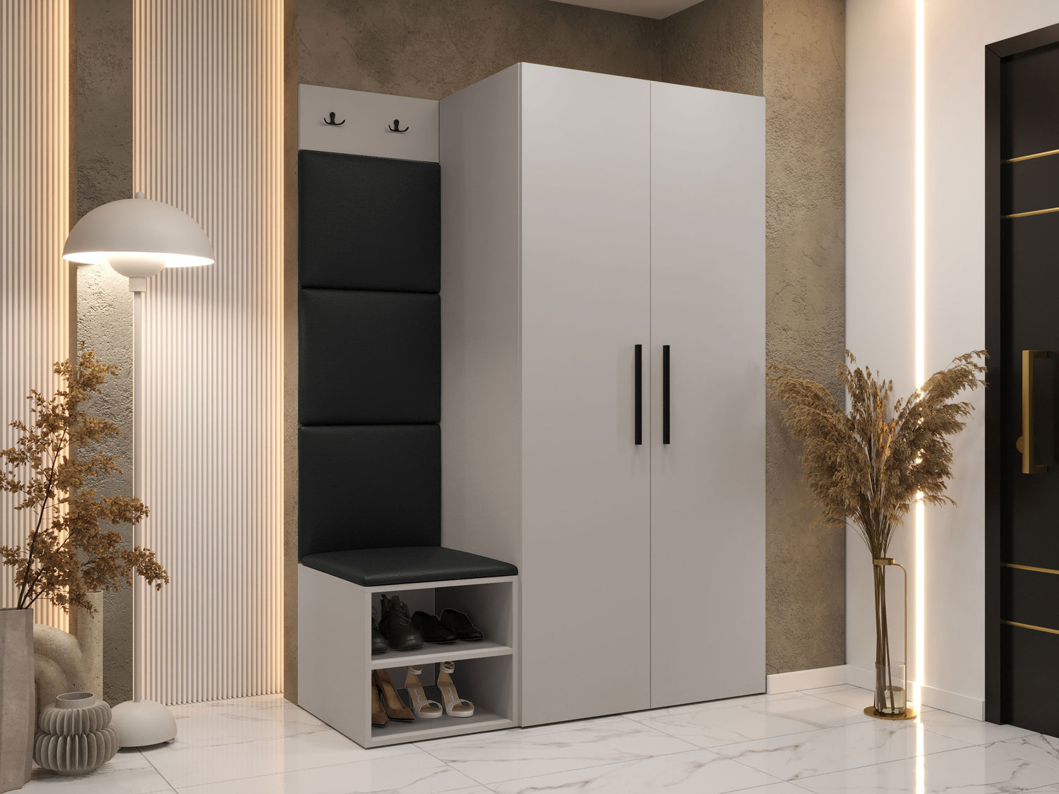 Blødt vægpanel, et elegant og funktionelt valg til dit hjem. Takket være den hævede overflade skaber panelet en unik 3D-effekt. Disse bløde paneler vil give mere hygge og komfort, og de vil desuden se ud som et dekorativt element. På grund af deres unikke egenskaber absorberer de lyd. Brug panelerne som en separat rumfunktion eller til at dække hele væggen. Panelet består af en 8 mm tyk plade, som gør det nemmere at montere på væggen. Blødheden og formen sikres af et 3 cm tykt syntetisk stof og det materiale, der dækker det. Du kan vælge et panelstof fra en bred vifte af farver, så du er sikker på at finde det, der passer bedst til din boligindretning.