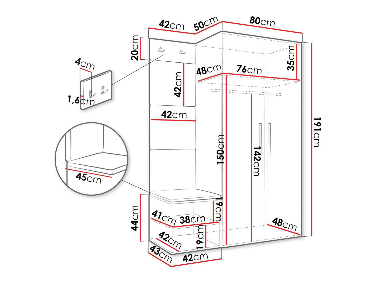 • Dimensioner på garderobeskabe