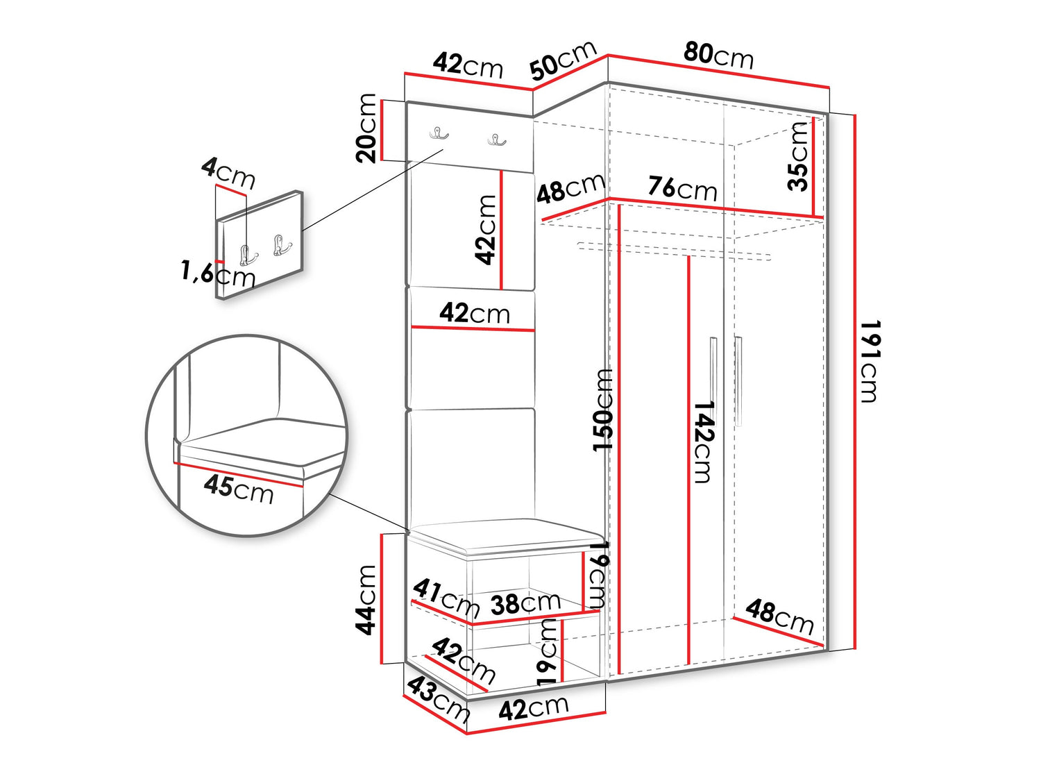 • Dimensioner på garderobeskabe