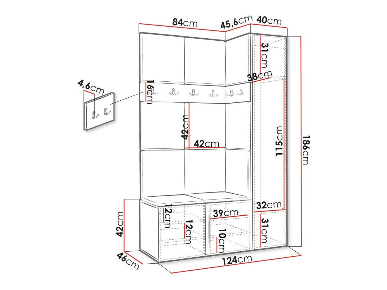 Dimensioner på garderobeskabe186 x 40 x 46 cm