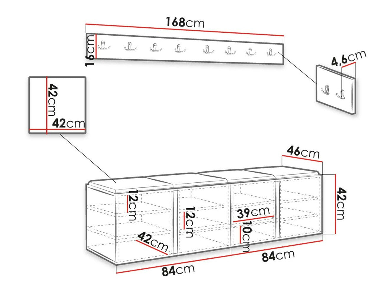Bøjlens dimensioner16 x 168 x 4.6 cm