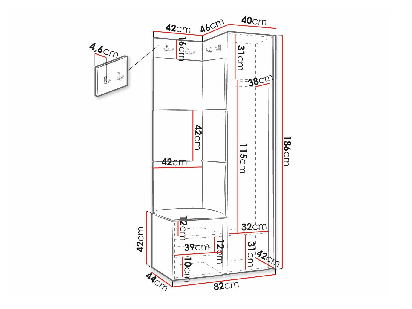 Dimensioner på garderobeskabe186 x 40 x 46 cm