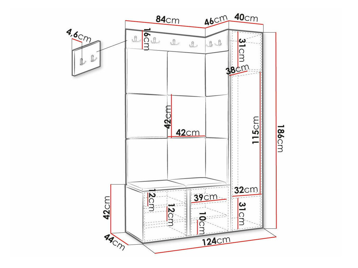 Dimensioner på garderobeskabe186 x 40 x 46 cm